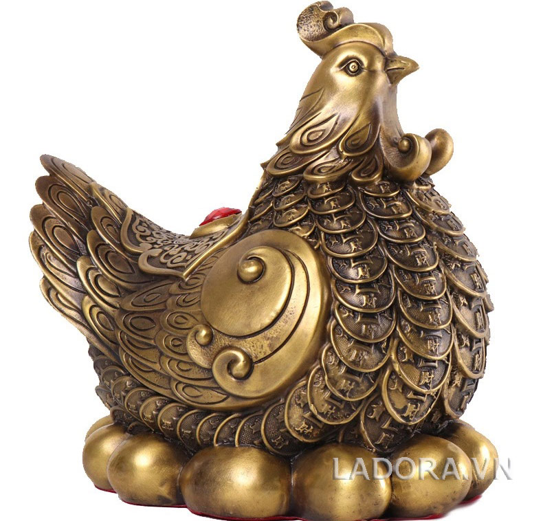 Giống như biểu tượng gà mái rất phổ biến trong quan niệm dân gian. Hình ảnh ấp trứng vàng như tiền của dồi dào, số trứng luôn càng ngày càng nhân thêm. Hàm ý luôn mong muốn gia chủ lúc nào cũng sung túc, thành công trong cuộc sống. Cũng bởi lẽ đó nó được nhiều người lựa chọn để bày trí trong phòng khách cũng như bàn làm việc.