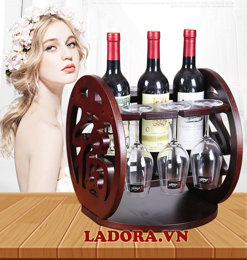 Với điểm nhấn là chữ phúc trong hình tròn với hệ thống kệ treo chắc chắn dùng để treo ly rượu vang và để chai rượu vang, chắc chắn mẫu giá treo này sẽ khiến không gian phòng khách của gia đình bạn trở nên phong cách hơn bao giờ hết.