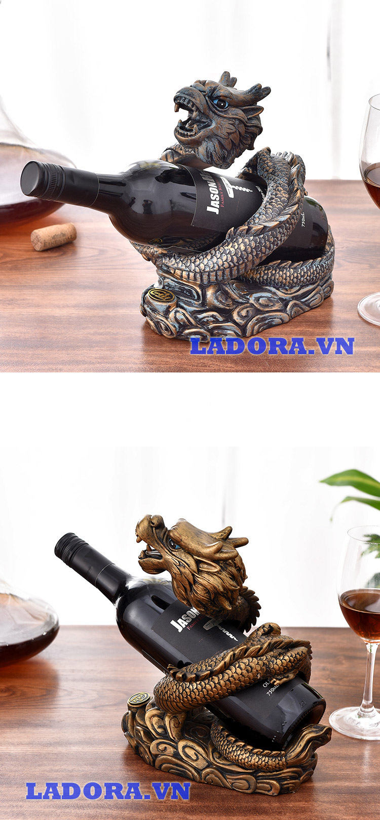 Không sai khi nói mẫu kệ rượu vang rồng may mắn là một trong những mẫu kệ để rượu vang hot nhất trên thị trường hiện nay nhờ vào dấu ấn nghệ thuật có một không hai mà mẫu kệ này có được. Tạo hình rồng sắc sảo trong từng chi tiết uốn lượn ôm lấy chai rượu vang mang đến một điểm nhấn nổi bật cho mẫu kệ này khi xuất hiện ở bất cứ nơi đâu.