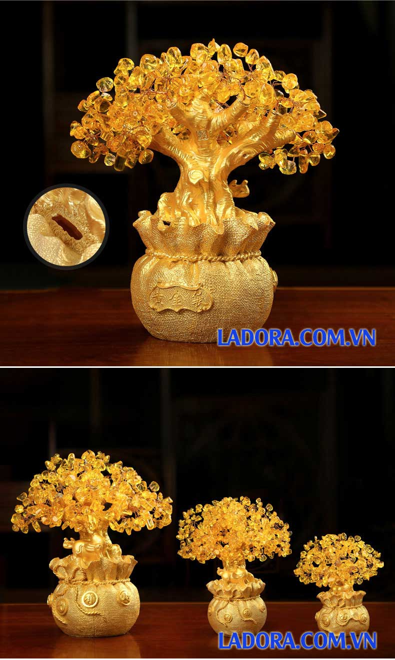 Cây tiền vàng được sinh ra từ trời đất, mang sức mạnh kỳ diệu tạo ra tiền bạc nhiều vô kể. Không những thế, khi đặt trong phòng khách nó còn đem lại may mắn, tài lộc cho gia chủ. Những viên đá gắn trên thân cây tượng trưng cho những thỏi vàng lấp lánh. Cây tiền vàng còn mang lại vận khí tốt, giúp bạn ‘ ăn nên làm ra ’, tiền vào như nước.