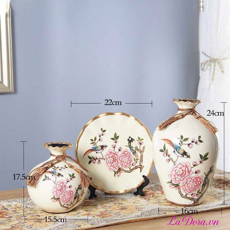 Bộ lộc bình gốm sứ chim và hoa BG007 với một vẻ đẹp hết sức thanh lịch và trang nhã sẽ là điểm nhấn thật tinh tế cho không gian nhà bạn. Bộ bình với hình ảnh chim và hoa chan hòa trong thiên nhiên làm đồ trang trí nội thất trong nhà sẽ đem đến cho không gian của bạn sự tươi tắn, đẹp đẽ và đầy sức sống. Mời bạn cùng Shop decor nhà đẹp Ladora ngắm nhìn bộ bình gốm xinh đẹp này. Có thể, bạn sẽ yêu thích ngay từ cái nhìn đầu tiên?
