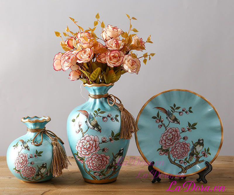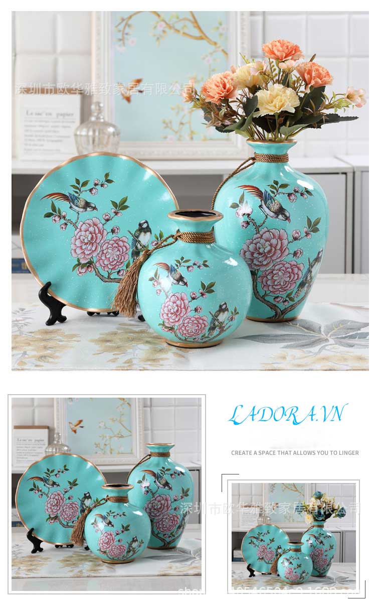 Quà tặng ý nghĩa với bộ lộc bình gốm sứ BG008 tại Ladora Shop