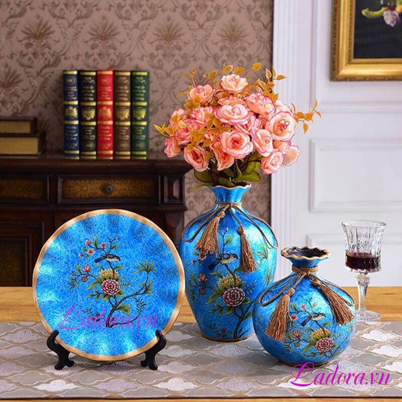 Bộ bình gốm sứ đẹp Chim và hoa với tông màu xanh dương độc đáo và khác lạ có làm bạn yêu thích? Màu sắc của bộ bình gốm này làm đồ trang trí nội thất phù hợp với những không gian hiện đại có tông màu sáng. Lúc đó, bộ bình gốm sẽ là điểm nhấn ấn tượng cho ngôi nhà của bạn.