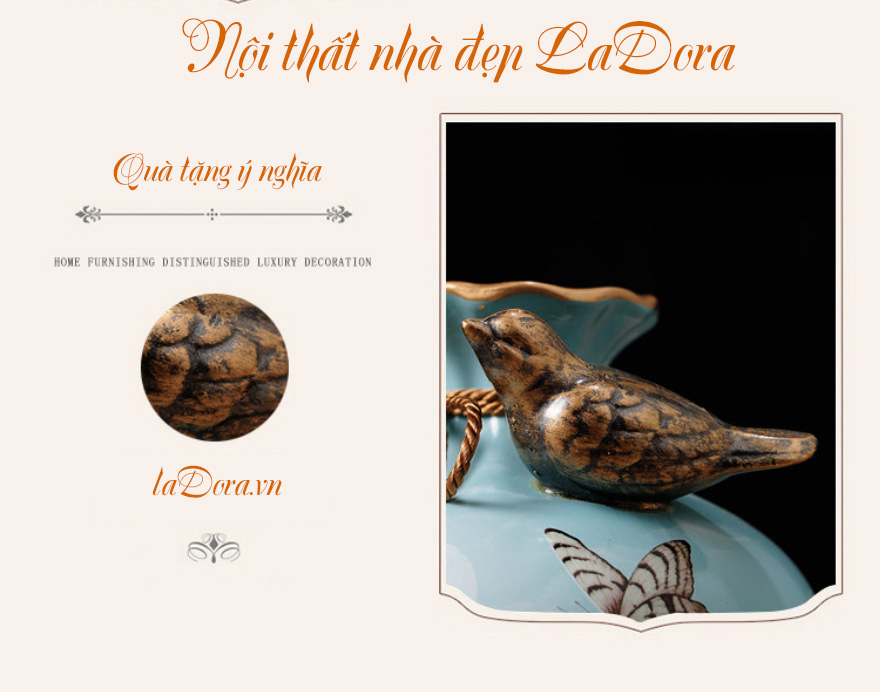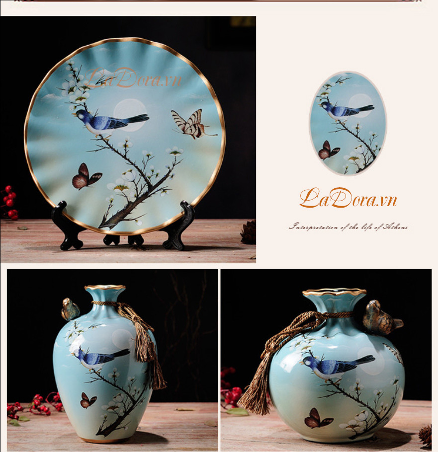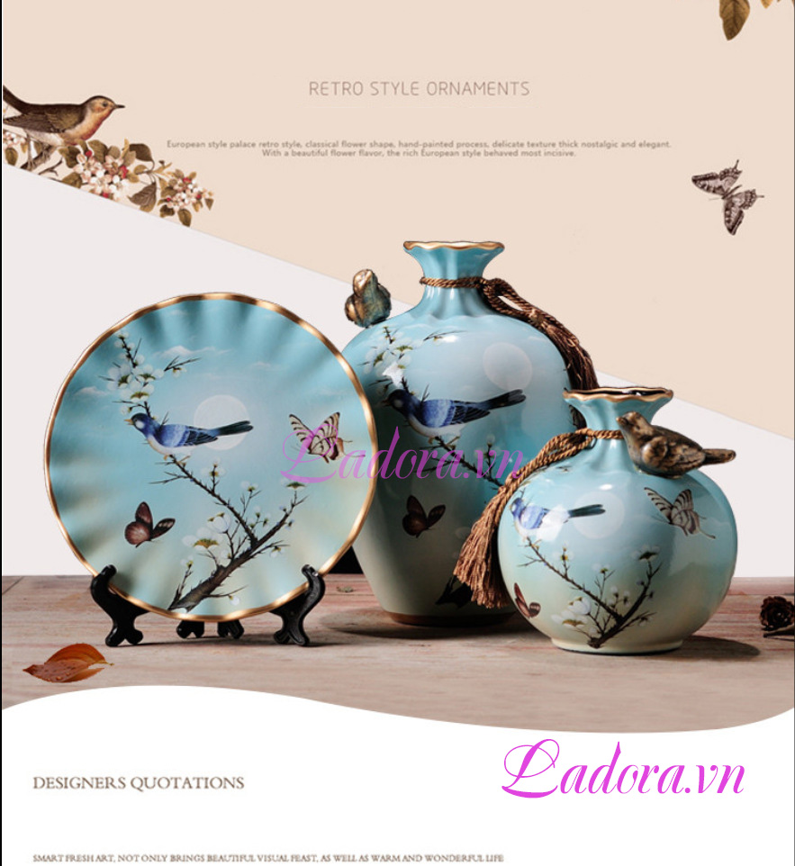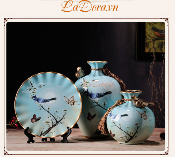 Trên bình gốm thể hiện một bức tranh thiên nhiên thật bình dị. Mỗi sớm ta thức dậy lại có ánh nắng mai chan hòa, có chim hót, có hoa nở đẹp đẽ ngay trong căn phòng của chúng ta. Đó là một bức tranh đầy ý nghĩa và màu sắc mà bộ bình gốm muốn thể hiện. Sau đây mời bạn cùng Shop decor nhà đẹp Ladora ngắm nhìn bộ bình gốm xinh đẹp này nhé.