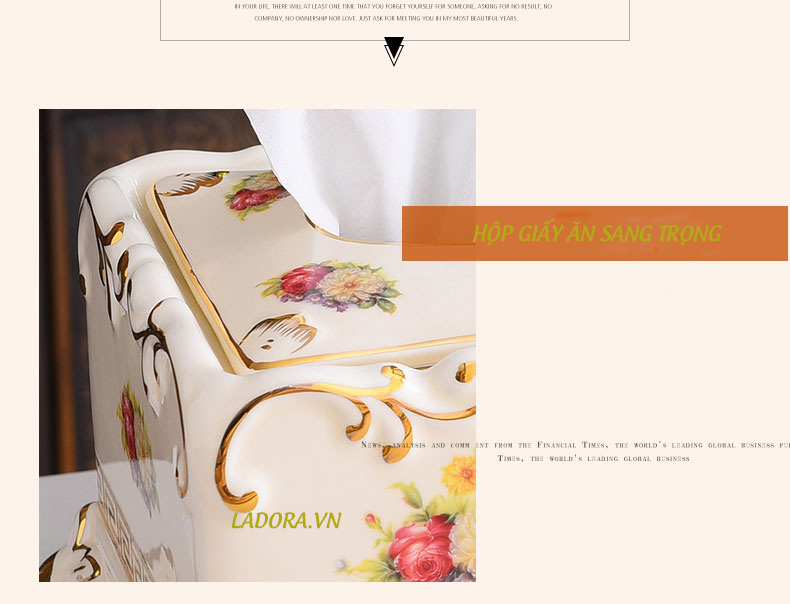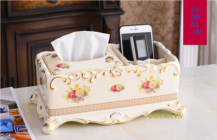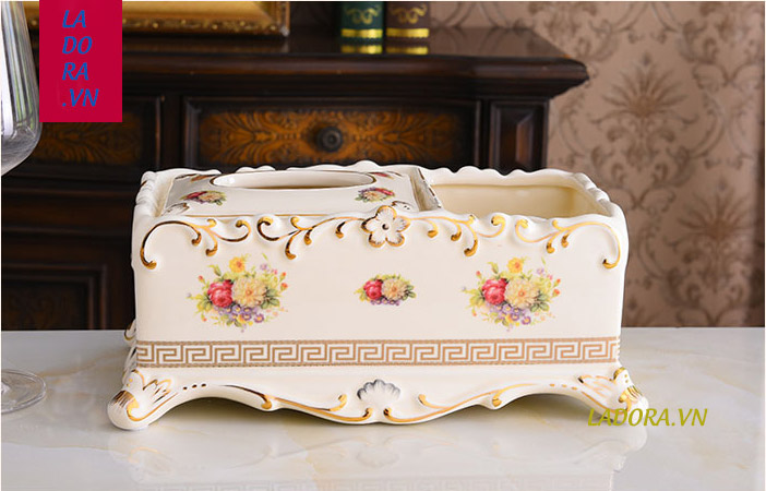 Những hình ảnh chi tiết trên chiếc hộp đựng khăn giấy gốm sứ