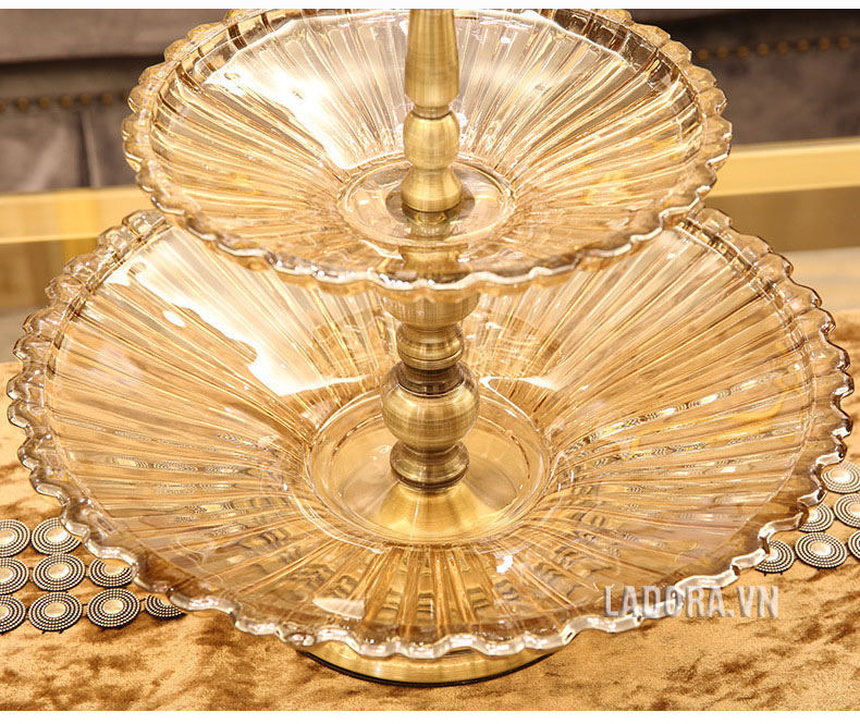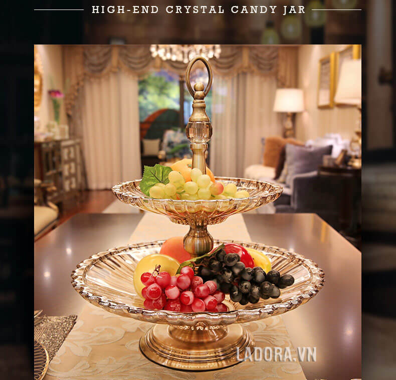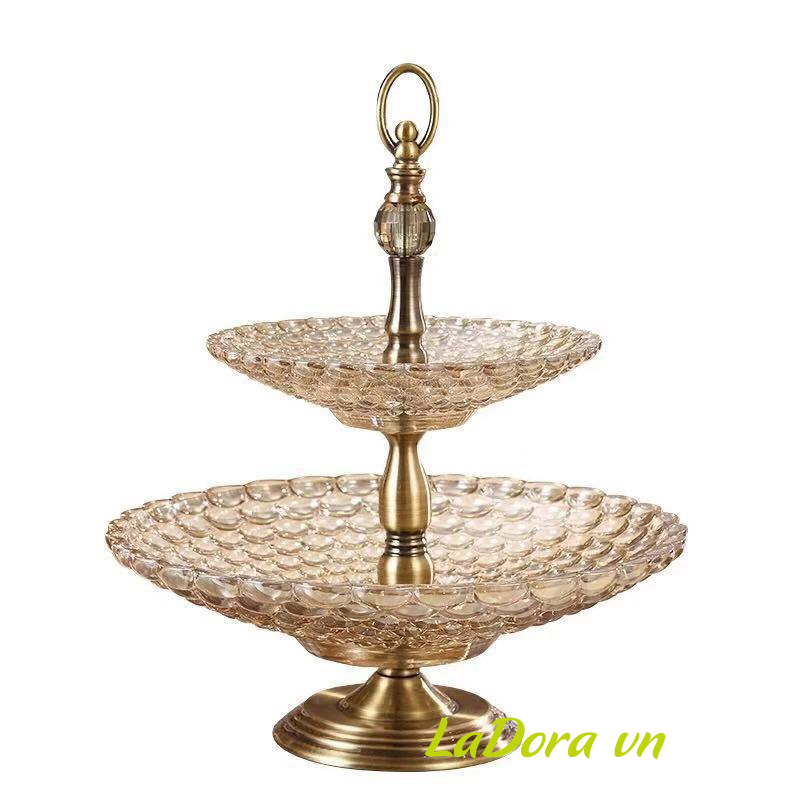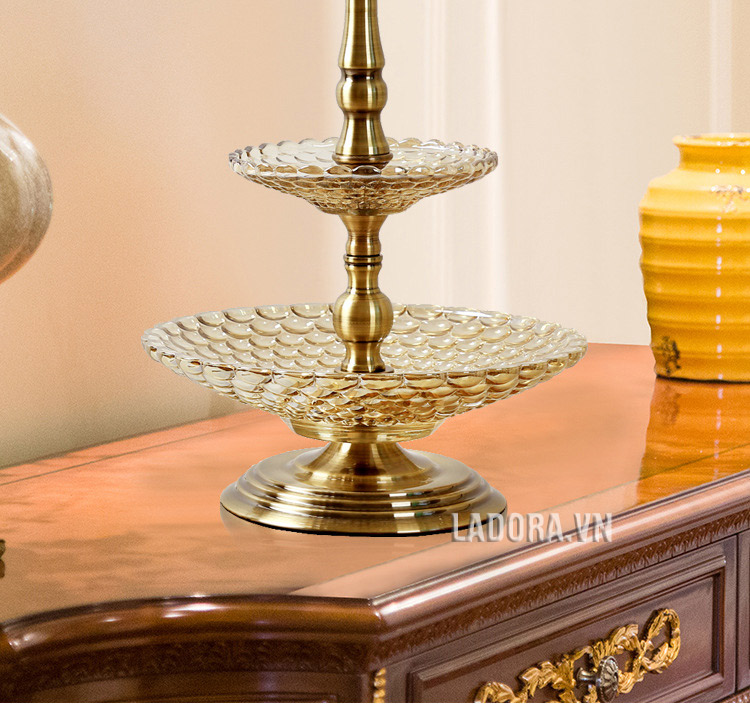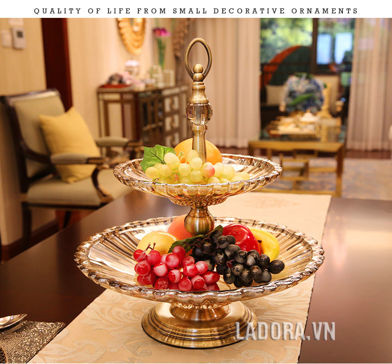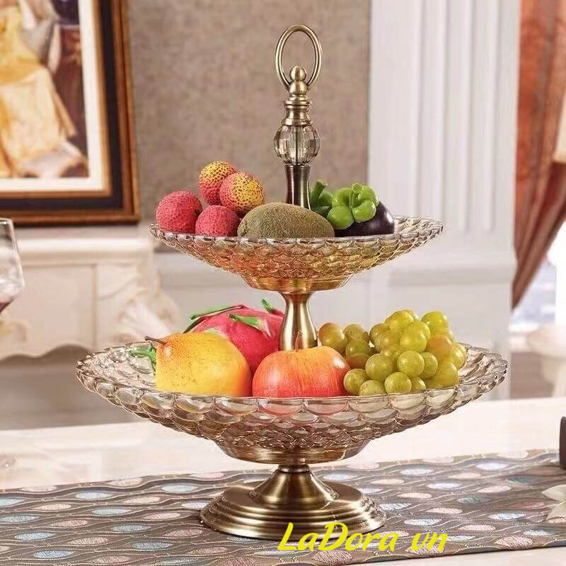Đồ trang trí bàn ăn sang trọng, bàn phòng khách đẹp – Đĩa đựng hoa quả 2 tầng