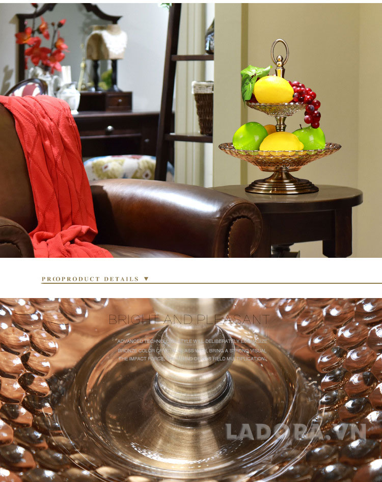 Đĩa đựng trái cây được đúc thủ công với chất liệu thủy tinh cao cấp với hai tầng có thể để được nhiều trái cây.