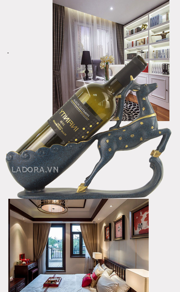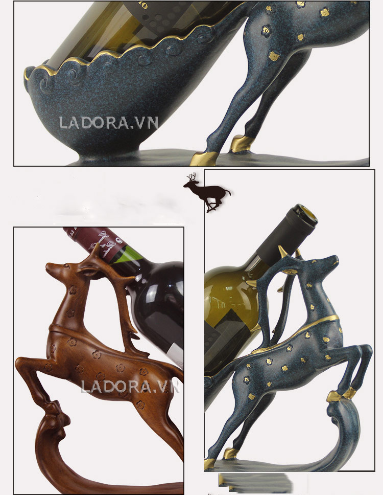 Kệ rươụ vang để bàn đẹp là món đồ decor không thể thiếu trong chiếc tủ rượu sang trọng. Kệ đựng rượu vang đẹp trang trí cho tủ rượu của bạn thêm sang trọng và nổi bật. Kệ rượu vang Tuần lộc cũng trang trí trên bàn làm việc, hay kệ tủ phòng khách sẽ đem lại cho gia chủ một không gian mới đẹp đẽ, đầy sức sống. Mời bạn cùng Shop decor nhà đẹp Ladora ngắm nhìn kệ rượu chú tuần lộc độc đáo này nhé!