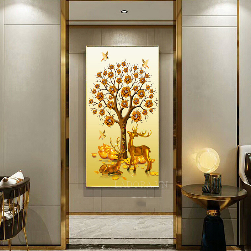 MANG TÀI LỘC ĐẾN VỚI GIA CHỦ BỞI BỨC TRANH TREO TƯỜNG TRANG TRÍ HƯƠU VÀ CÂY TÀI LỘC