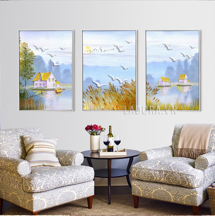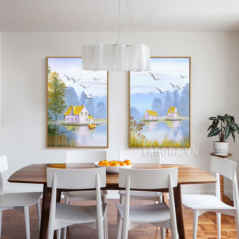 Quà tặng ý nghĩa cho người thân, bạn bè với bức tranh treo tường trang trí đẹp ngôi nhà bên hồ nước